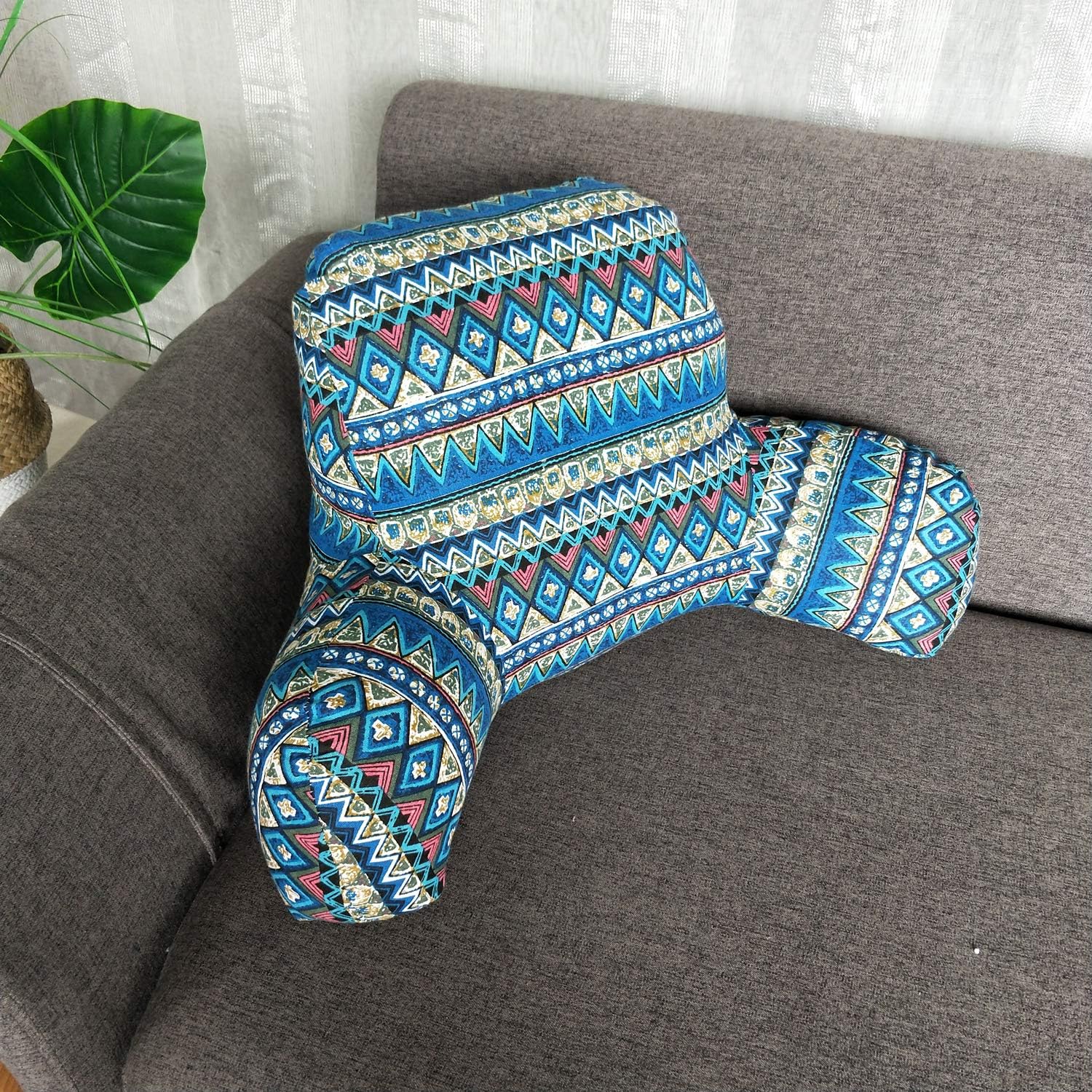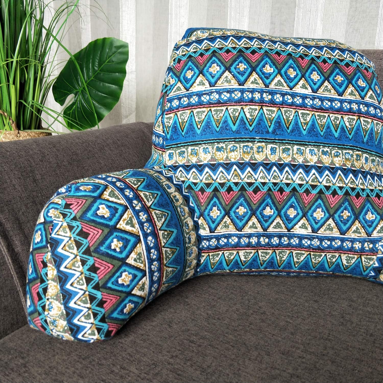 1pc Bohemian Reading Pillow with Armrests, Back Support Cushion for Reading and TV Viewing, , Multi-functional Pillow for Bed, Sofa, Chair, Office and Car, Large for Bed or Sofa Use, Small for Chair or Sofa Use, Washable Cover, Blue Color Boho