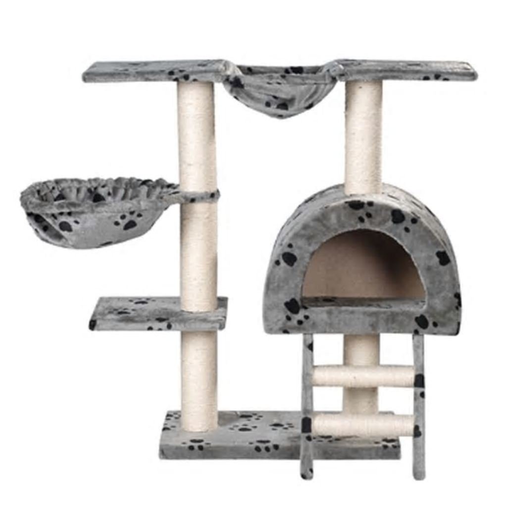 Cat Tree 41" Gray with Paw Prints Plush Cat Tree 41" Gray with Paw Prints Plush Cat Tree 41" Gray with Paw Prints Plush