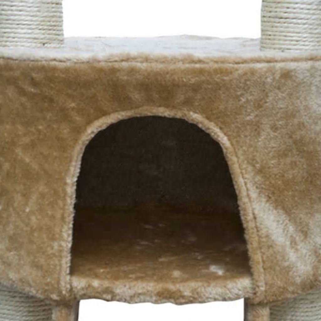 The plush carpeted surface provides extra comfort. The scratch poles are wrapped with sisal ropes for your pets to scratch and play with. There is a house where your cat can hide safely and a play-pole at the very top. It also has 2 ladders, 2 baskets, 3 play strings, a play-cord, 4 tunnels and multiple balconies to keep your cat busy as well as have a comfortable rest.