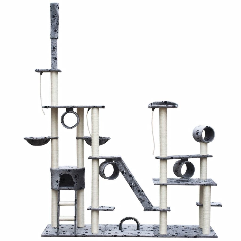 Cat Tree Deluxe 90" - 102" Gray with Paw Prints Plush Cat Tree Deluxe 90" - 102" Gray with Paw Prints Plush Cat Tree Deluxe 90" - 102" Gray with Paw Prints Plush Cat Tree Deluxe 90" - 102" Gray with Paw Prints Plush Cat Tree Deluxe 90" - 102" Gray with Paw Prints Plush