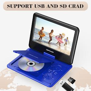 DBPOWER 11.5" Portable DVD Player, 5-Hour Built-in Rechargeable Battery, With 9" Swivel Screen, Support CD/DVD/SD Card/USB, With Remote Control,