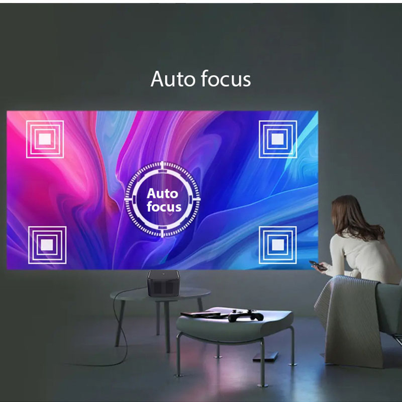 Product Description The Smart Projector runs on Android 9.0 system with HiSilicon 352 chip and 1+8GB memory, ensuring smooth operation. Native 720P resolution supports 4K video decoding, combined with 150 ANSI lumens brightness and 2000:1 contrast ratio for clear, detailed picture quality. Electronic keystone correction and electric focus system make installation easier, while multiple projection modes meet different scenario needs. Dual-band WiFi and Bluetooth 5.0 provide stable connectivity, with rich interface options for various external devices.