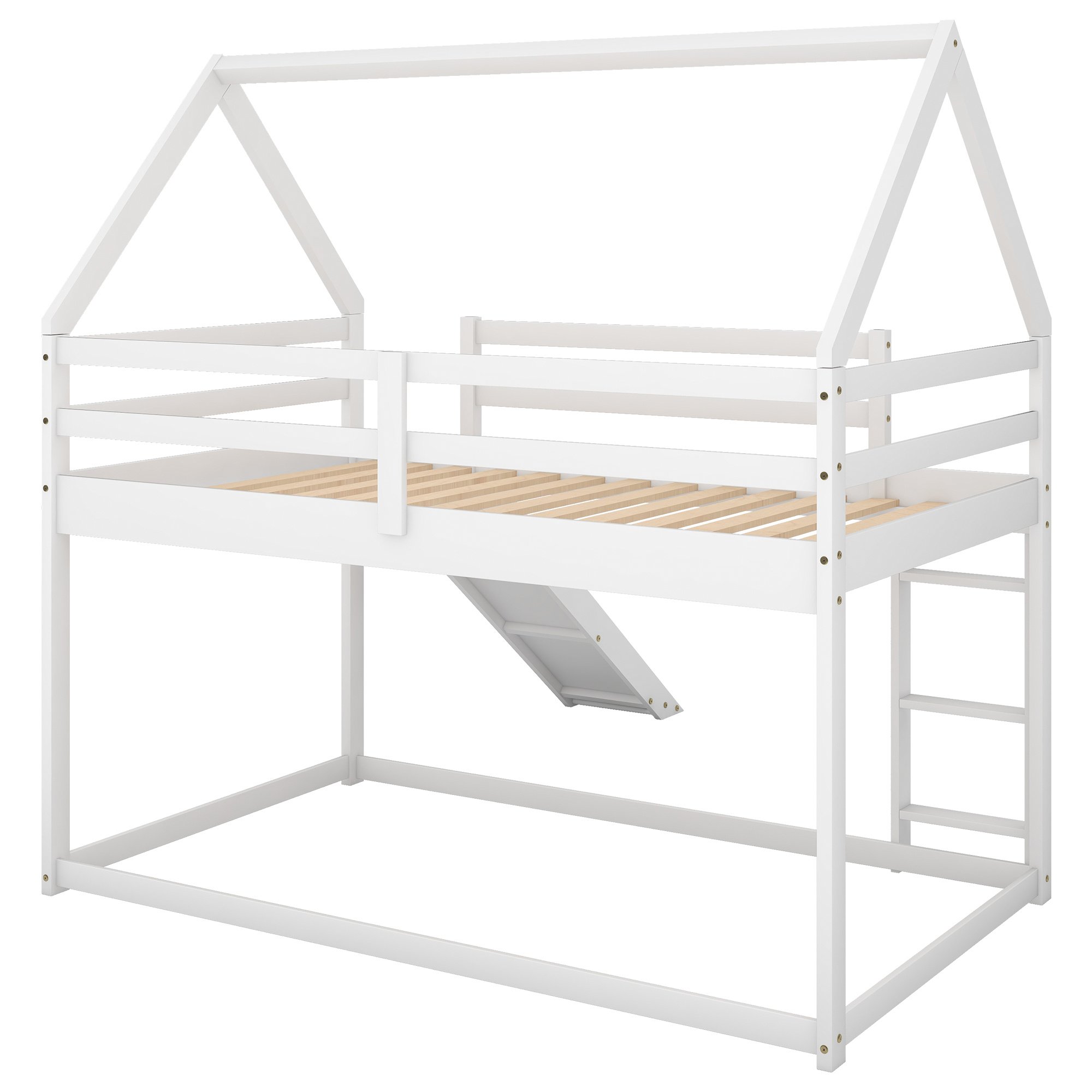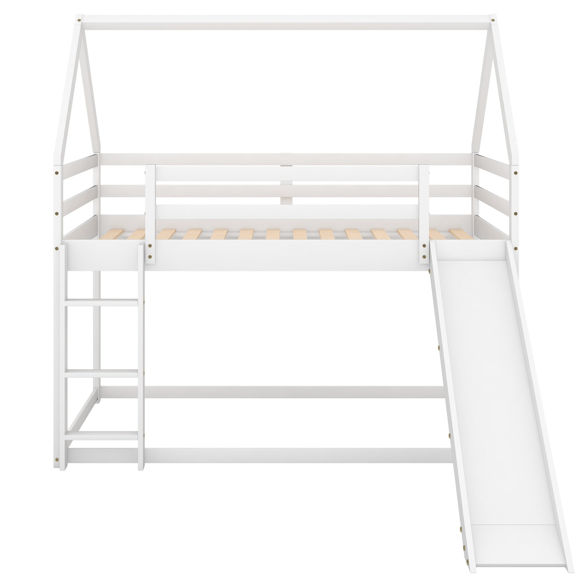 Twin Size Bunk House Bed with Slide and Ladder,White