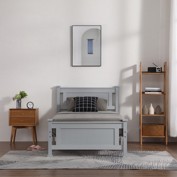 This Bed is made from quality solid pine wood with hardwood slats. It's built to last. Its headboard offers understated visual appeal with its geometric pattern of large rectangles, created by vertical and horizontal stitching. Mattress can be put on the slats directly,abandon box springs,you can save more money and time. So don't hesitate, it's a good choice for you!